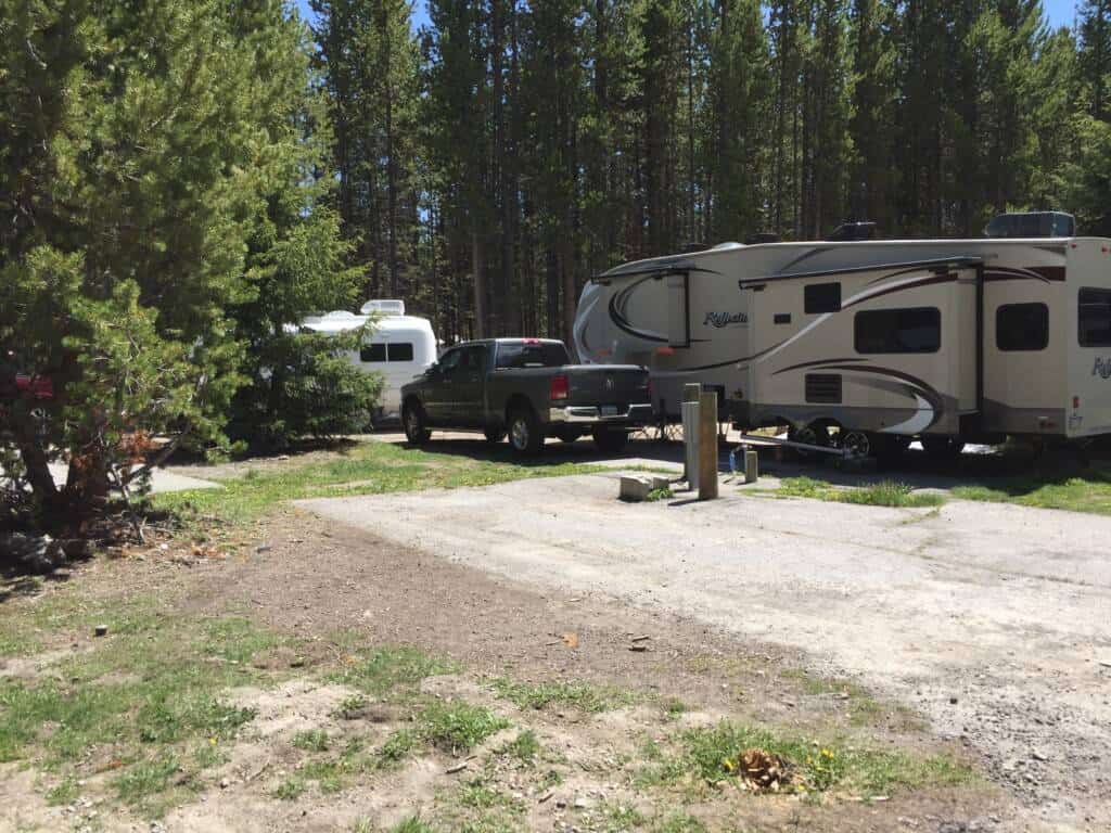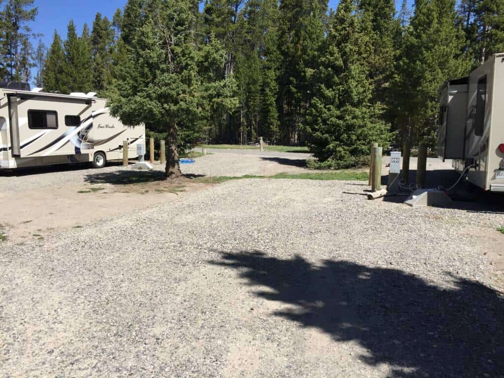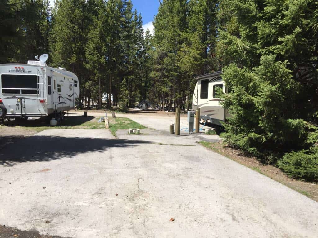 The RV sites are located on multiple loops with backin sites. Very tight spacing between RVs they utilize every inch of space to fit as many units in as possible. Way over priced for the type of site and amenities BUT location is the driver. Full hookups inside Yellowstone National Park!