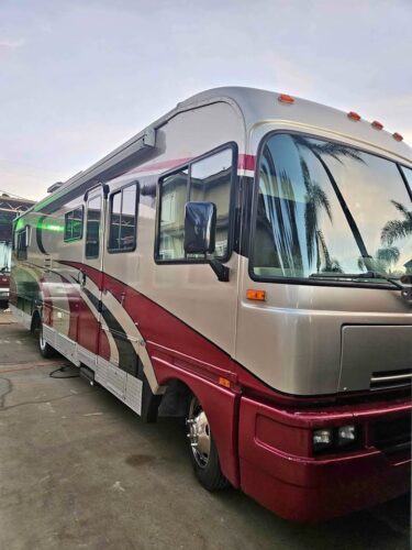 What makes this particular Bounder stand out is its quiet evolution. Over time, it’s been fitted with new tires, updated lighting, refreshed flooring, and a fresh battery—a mix of care and upgrades that suggest someone was still invested in keeping it rolling comfortably. It still carries that unmistakable burgundy exterior, paired with a streamlined silhouette that recalls long-distance travel before things got too digital.