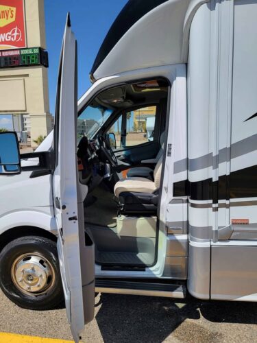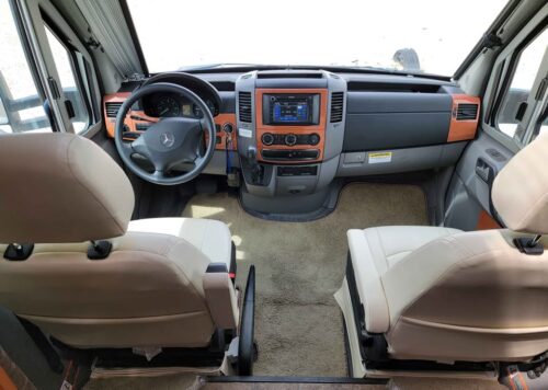 Mercedes-Benz cockpit – plush, smooth, efficient. Like driving a luxury van that just happens to be your house
