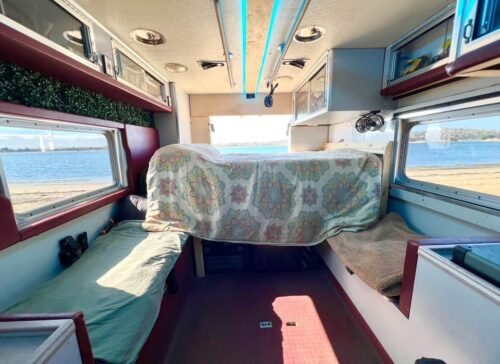 Inside, this build isn’t just about brute force—it’s been thoughtfully designed for off-grid living, featuring a solar-powered electrical system that allows for extended stays in remote locations: