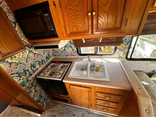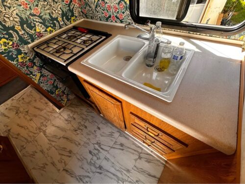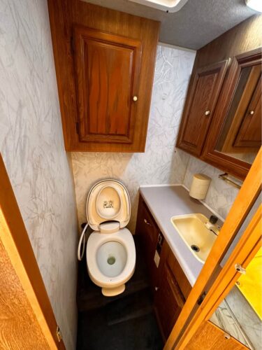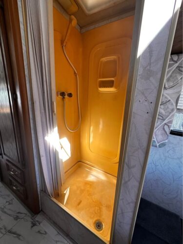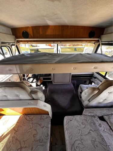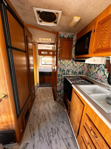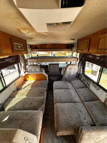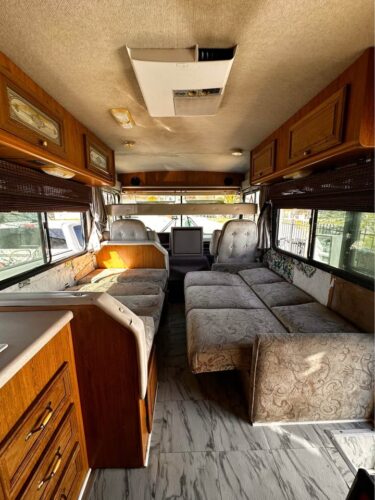 Inside, it reflects the style of its era: orange tones, practical layout, and signs of time passed. Yet much of the original equipment—AC, heater, water systems, fridge, and stove—is reportedly still in working order. The generator runs briefly before shutting off, likely a fuel pump issue.