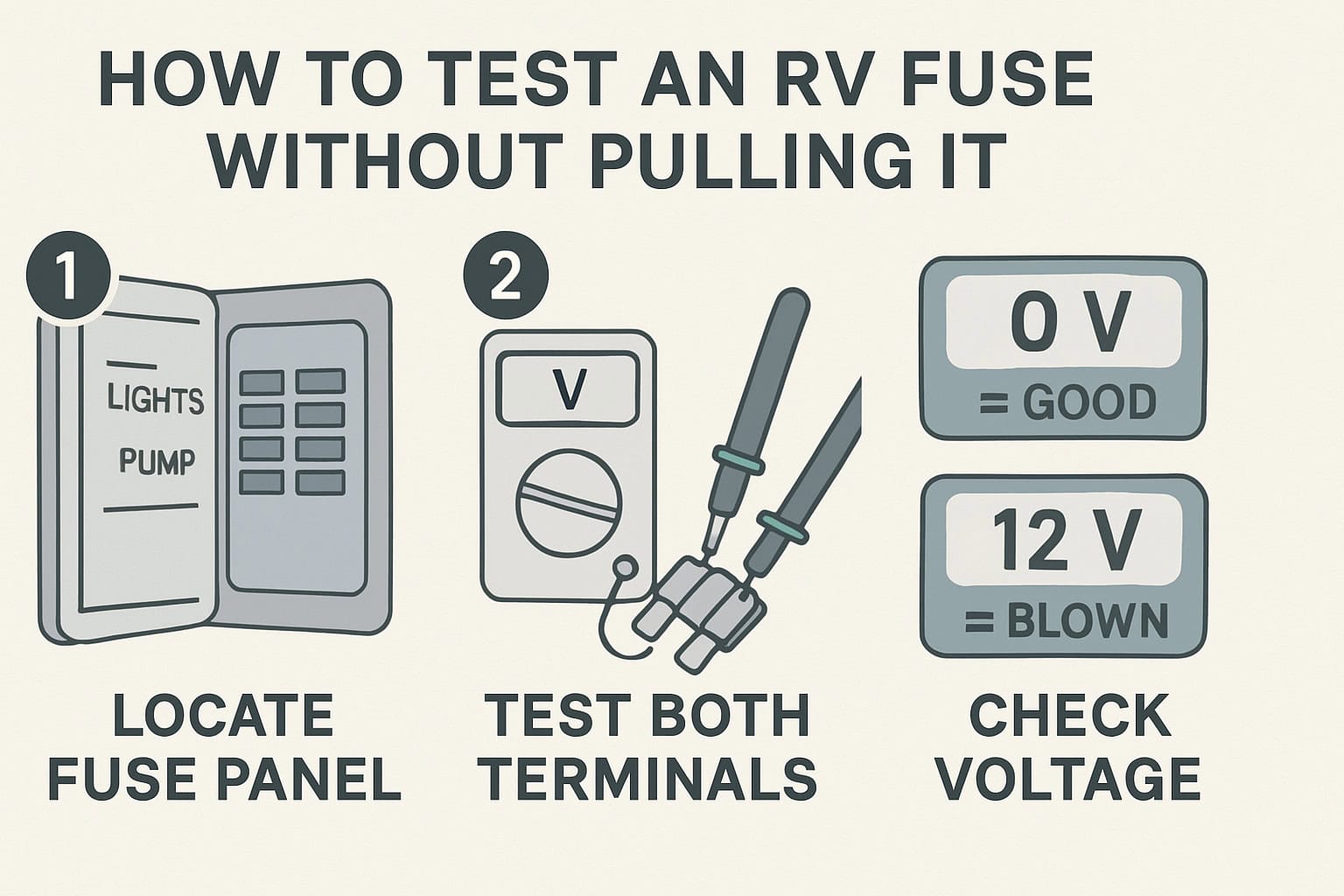 Fuse problems are common in RVs—but fixing them doesn’t have to be a hassle. With a test light or multimeter, you can find the issue in seconds—without pulling a thing.