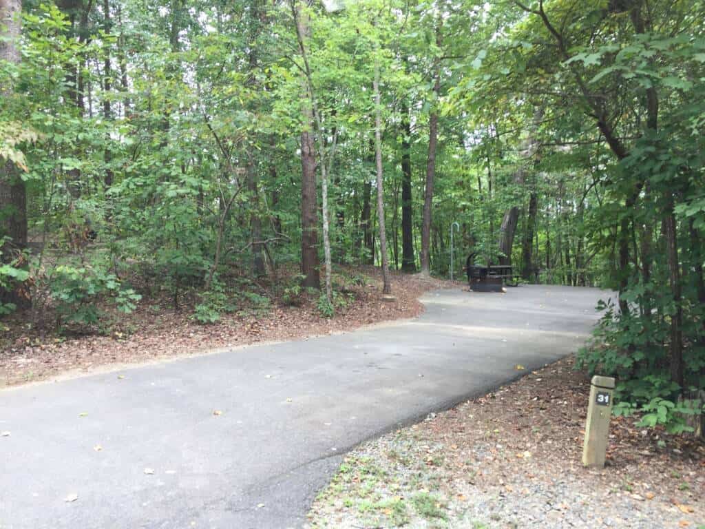 There is a paved bike trail (hilly) / walking trail around the whole campground. It’s a 5 minute walk down to the lake where there is a boat launch. The shower building is huge and well kept. Semi heavily wood forest. Dump station as you leave.