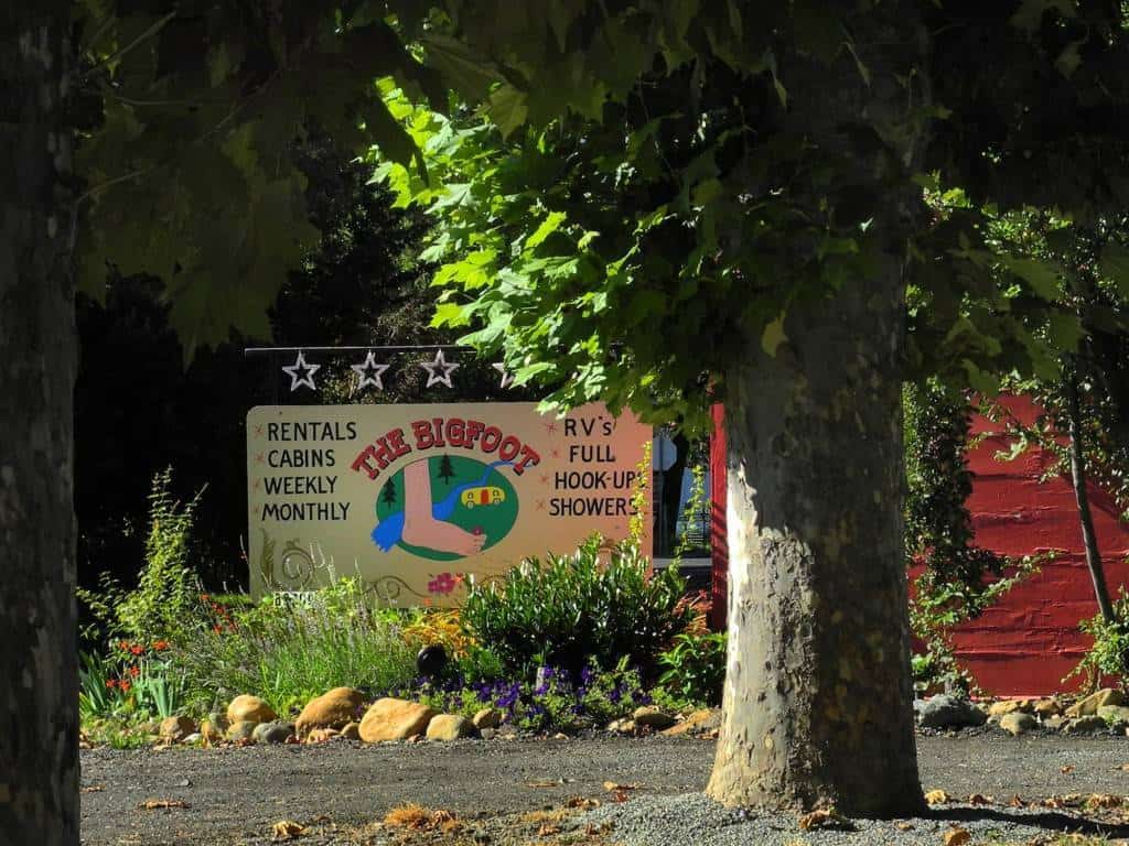 Big Foot RV Park & Cabins in Happy Camp California provides RV spots with full hookups, cabins and camp sites. Located about 65 miles west of Eureka. Located in a very rural setting the road into the park is twisty and hilly. Situated within the small town guests can walk to local shops and the Klamath River nearby. Dirt roads with backin sites set on mowed grass the park has large shade trees.
