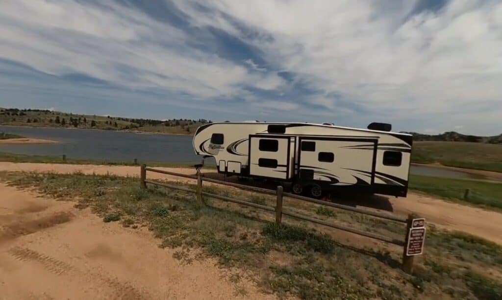 Curt Gowdy State Park Campground between Laramie and Cheyenne Wyoming is a large and popular park located in the Happy Jack Mountain area. With multiple camping areas situated around the shores of the fresh water reservoir there are plenty of camping options to suit anyone’s taste. Campgrounds include small primitive tent and small RV camping sites in the trees to large open camping areas with partial hookups for RVs. Hookups include water and electric with a dump station on site. Curt Gowdy is also known for its high end IMBA certified mountain bike trails, excellent hiking, close by off-roading, archery range, excellent fishing, kayaking, canoeing and sailing. This high altitude paradise welcomes guests. Paved access roads turn to groomed gravel for campground roads and site pads. Restrooms are located throughout and trails connect the various camping loops. Park is open 365 days, 24 hours.