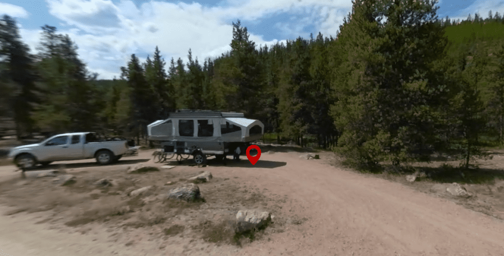 The campground is nestled among ponderosa and lodgepole pine trees, at the edge of a broad, flat valley dotted with sagebrush. Most campsites are situated with the Taylor River on one side and open views of the Sawatch Mountains on the other side.