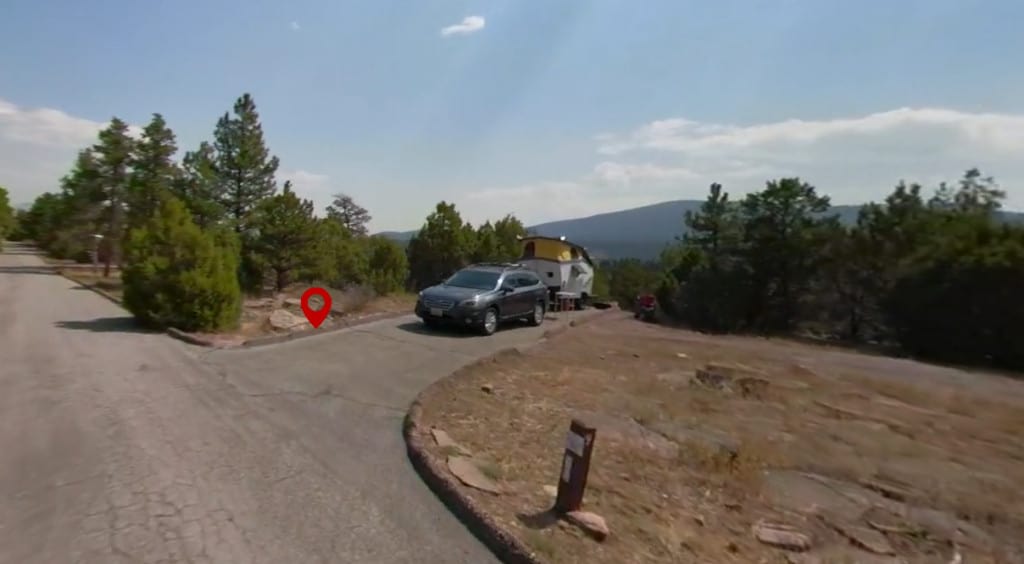 The campground offers several family sites, six of which are accessible. Each site is equipped with a picnic table and campfire ring; some sites have grills. Flush toilets, drinking water and a dump station are available. Roads and parking spurs within the campground are paved. Firewood is available for purchase from the host. Public showers are available 2.5 miles away at Deer Run Campground. Bootleg Amphitheater, with a screen support and bleacher seating for 120 people, is located just across the road. Educational programs are offered throughout the summer season. A scenic overlook dedicated to the firefighters is located on-site.