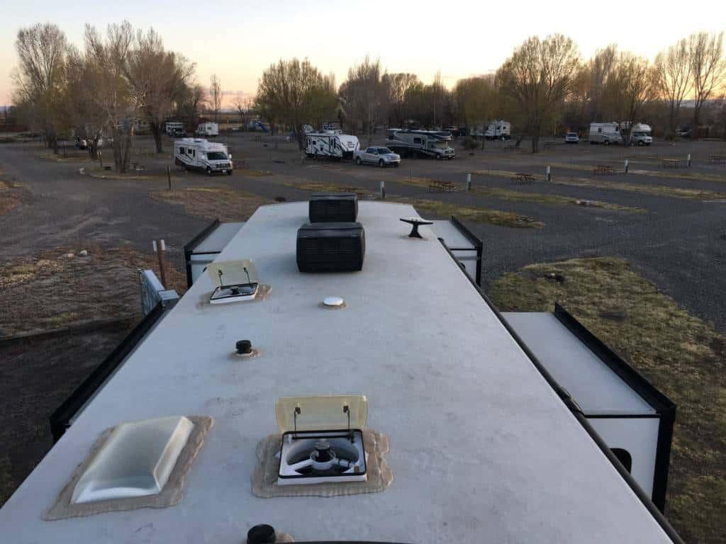 Pretty bare and rough landscaping, big sites, friendly staff, nice views on high mountains in the distance. Stayed for one night in a 41’ 5th wheel.