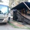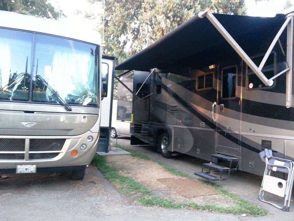 Site roads and parking pads are all blacktop pavement. Sites are separated by small grass patches but overall are sandwiched pretty tight (it is an urban area where space is a premium). Management does a good job of spacing rigs out as occupancy allows. The park at one time accepted longer term guests but has changed policies and no longer allows new guests to stay longer than 28 days. Existing long term guests are being allowed to stay until they clear out via attrition..