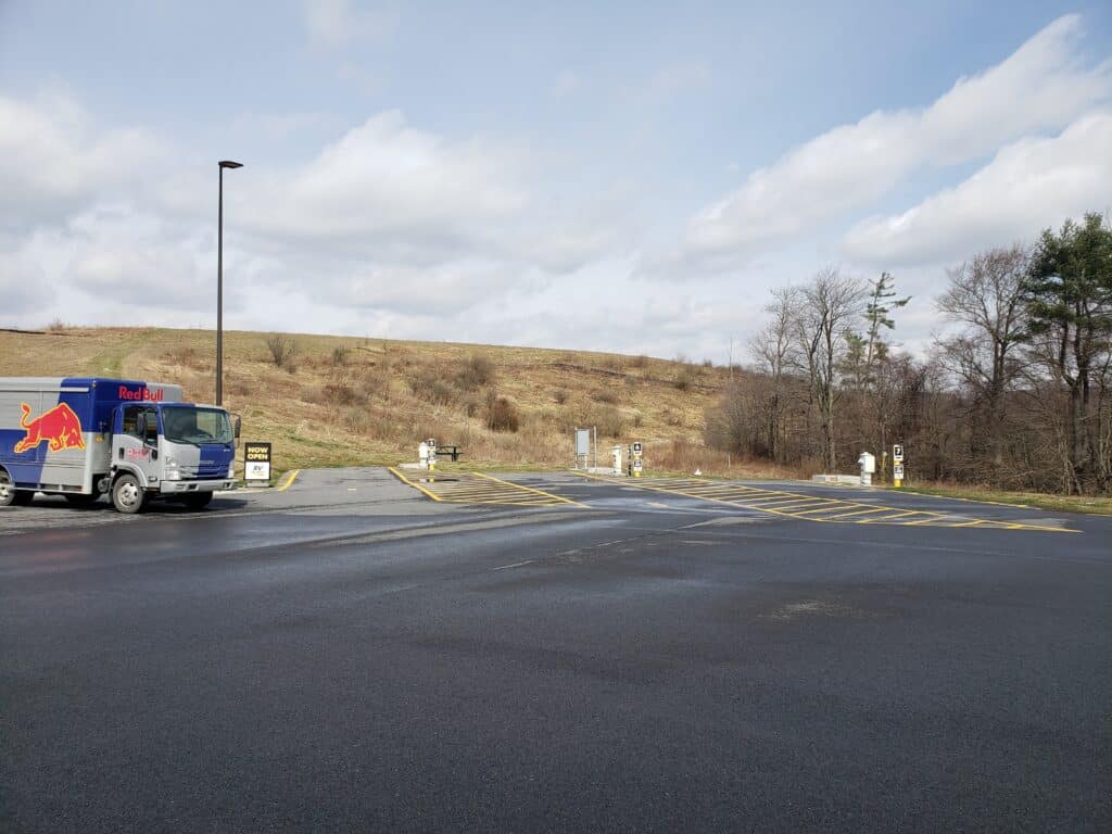 Backing full hookup sites in the perimeter of the auto fuel station. Not bad for an overnight. Lots of movement.