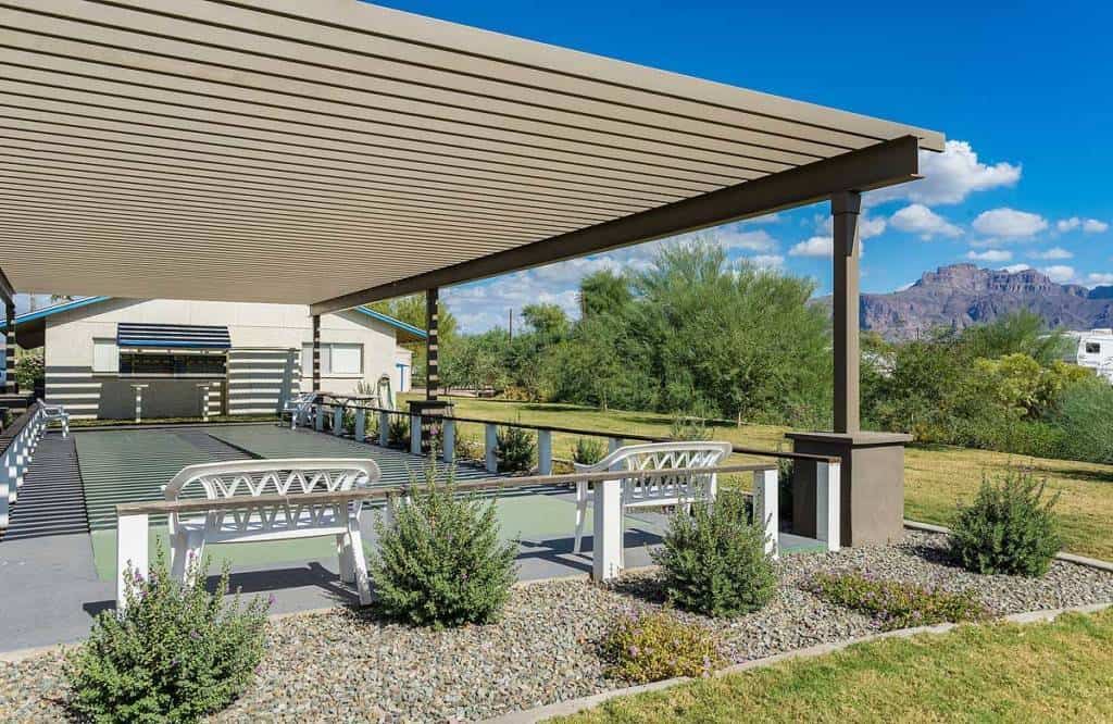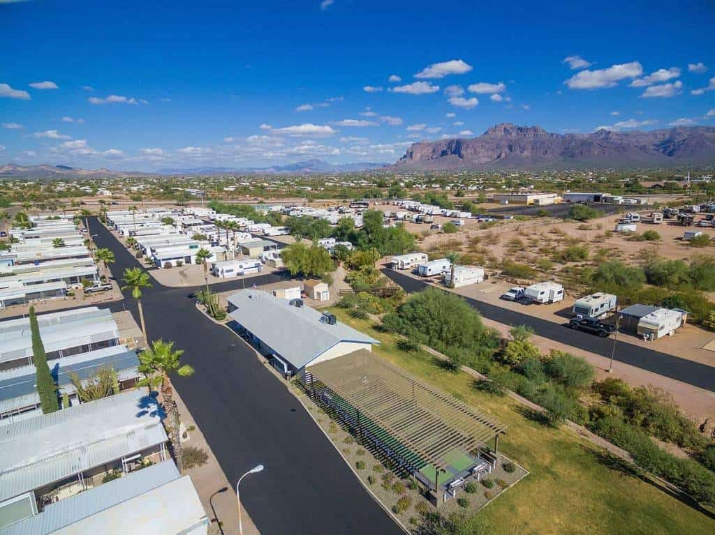 Newhaven Estates in Apache Junction Arizona is an adult oriented, 55+, community managed by Triton Lifestyle Properties. Located near the base of the Superstition Mountains the park has paved roads with desert gravel sites. A revamped entrance defines the ambiance for this park. A clubhouse and patio are available.