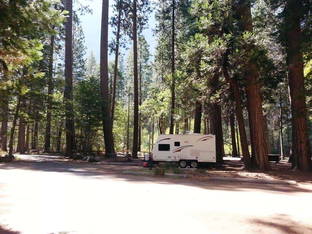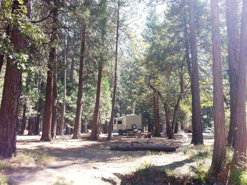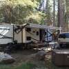 Open to both tent and RV camping North Pines campground has the “largest” RV accessible sites with site limits, depending upon availability, of RVs up to 40 feet and trailers up to 35 feet. Each site has a picnic table, fire ring and bear box. Unlike Lower Pines North Pines requires a bit more “navigating” to get around in larger RVs. Restrooms with running water and water spigots are located throughout. Showers are available at Half Dome Village, formerly Curry Village and Housekeeping Camp.