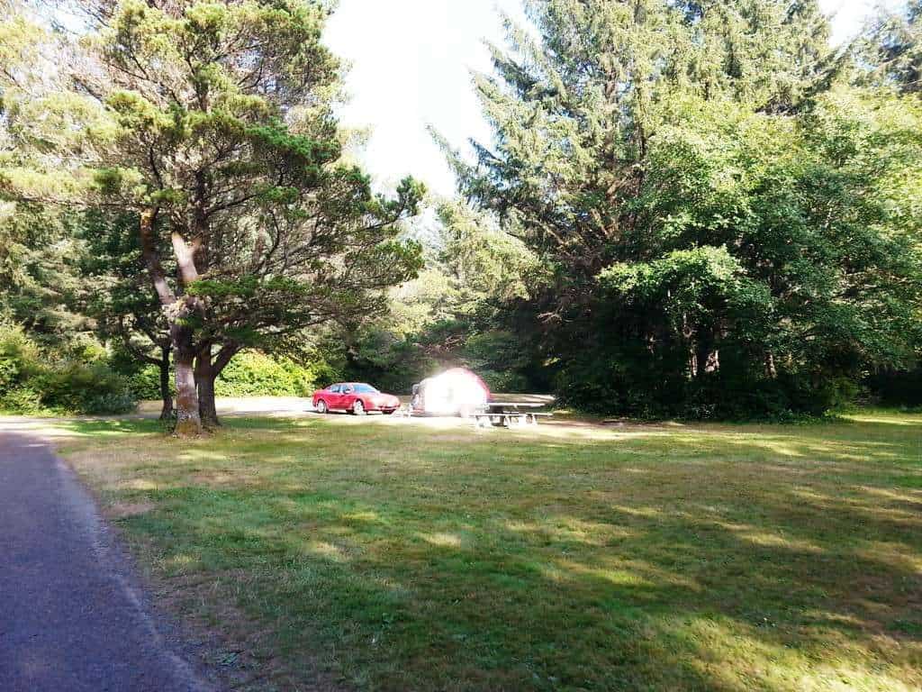 Ocean City State Park Campground in Ocean Shores Washington has 149 standard campsites and 29 full hookup sites adjacent to the beach and dunes. A mix of large open sites and smaller sites tucked in to trees this popular state park provides access to scenic beaches and shaded hiking trails. Backin and pull thru sites the park has paved roads with either dirt/ gravel parking pads or paved parking pads. Sites have picnic tables and fire rings.