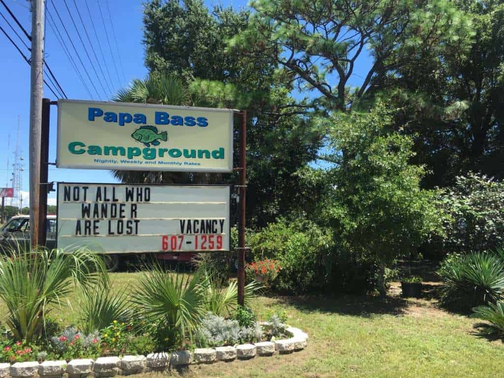 Papa Bass Campground in Gulf Breeze Florida caters to long term tenants with full hookup RV sites.