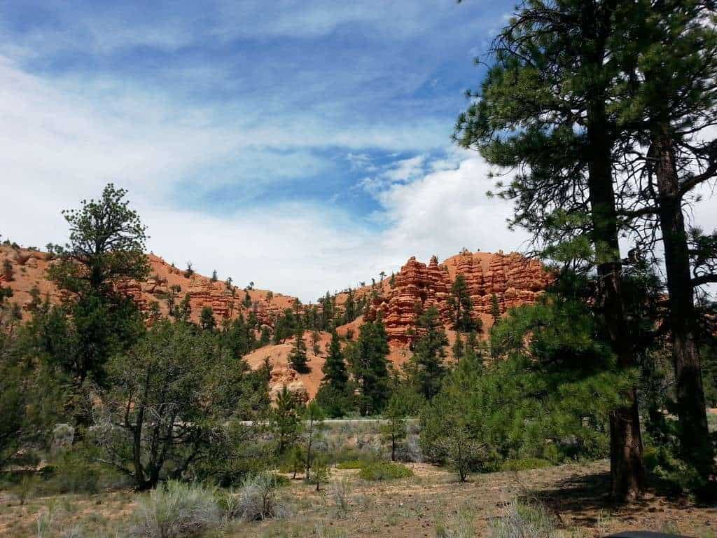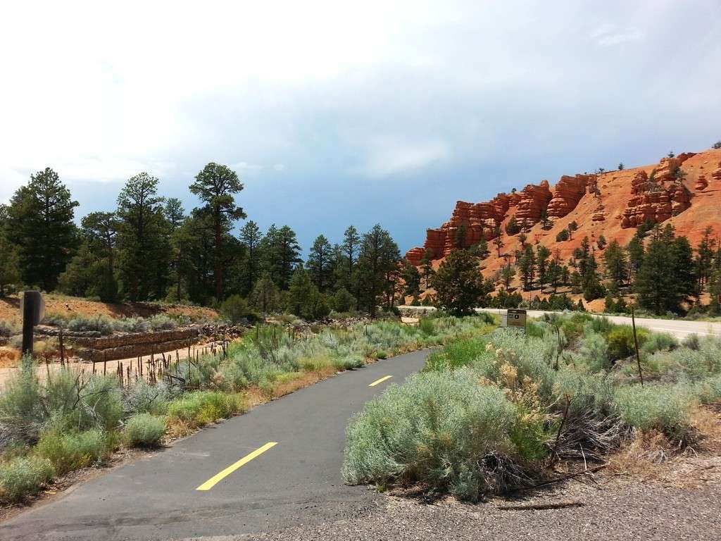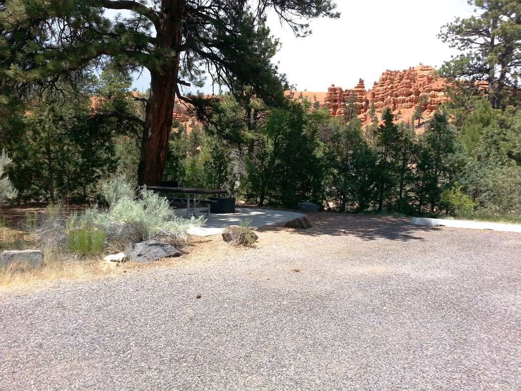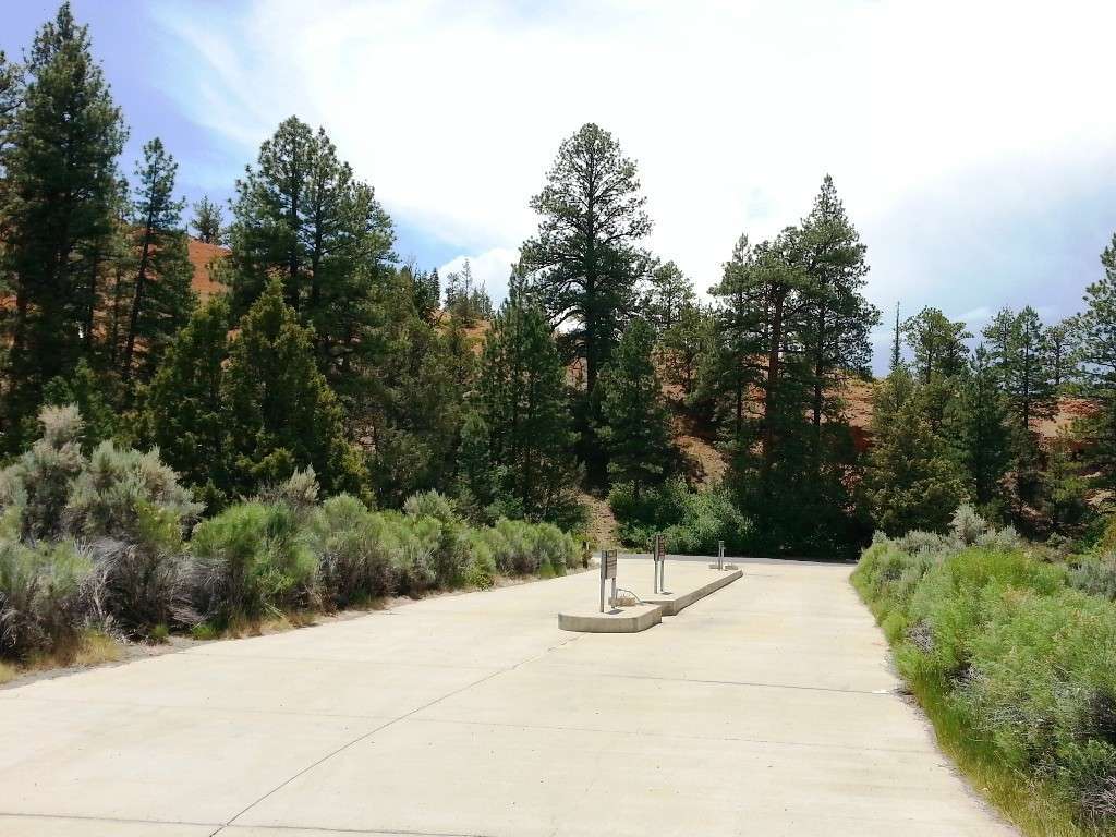 Red Canyon Campground in Red Canyon Utah west of Bryce Canyon National Park (Panguitch) is a US Forest Service managed campground (Dixie National Forest) providing primitive tent and RV camping in a scenic location. Tucked just off UT 12 the campground is smack dab in the middle of the scenic canyon and adjacent to the popular multi-use bike/ hiking path that parallels the road. Divided in to two loops the campground has a mix of smaller tent and small RV sites and large pull thru and backin RV sites. A large and easily accessible dump station is available along with clean bathrooms/ showers and water fill spigots. Paved roads and parking pads. picnic tables, fire rings and a clear area for tent setup are available at every site.