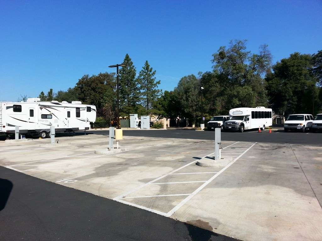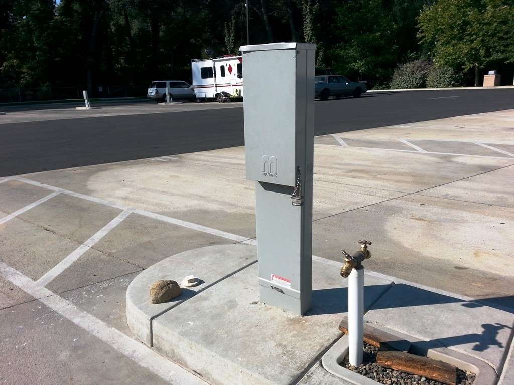 $24/ night for a concrete parking pad with full hookups. Easy in and out we were greeted by one of their friendly golfing cart valet drivers. Picked a spot and he gave us a ride to checkin. Front desk staff were not cheery and not professional but got us checked in and provided the key for the electricity. Yes they lock up their electricity! Night is day here where they flood the area with white light at night. There is a crime problem here due to location and type of business so they are aggressive about security. The pool was an ice box and the spa was a broiler. Arcade was 4 games. Overall we were unimpressed and will not return. Verizon 4g was excellent 5 bars. A little bit off I5 the place is better than a Walmart but not perfect.