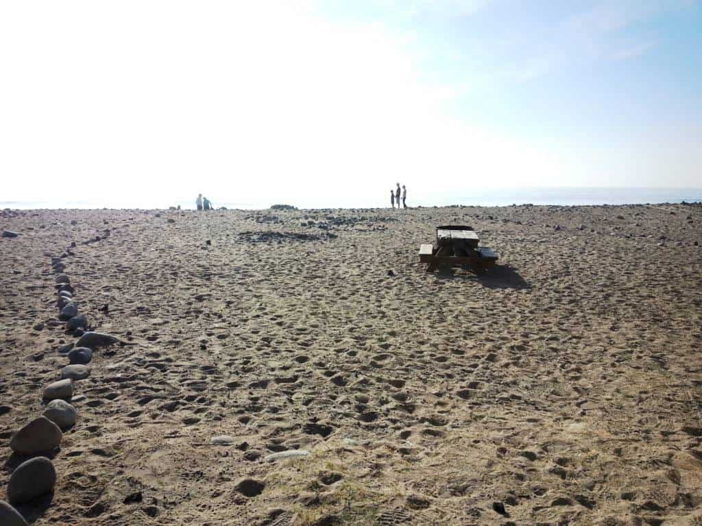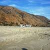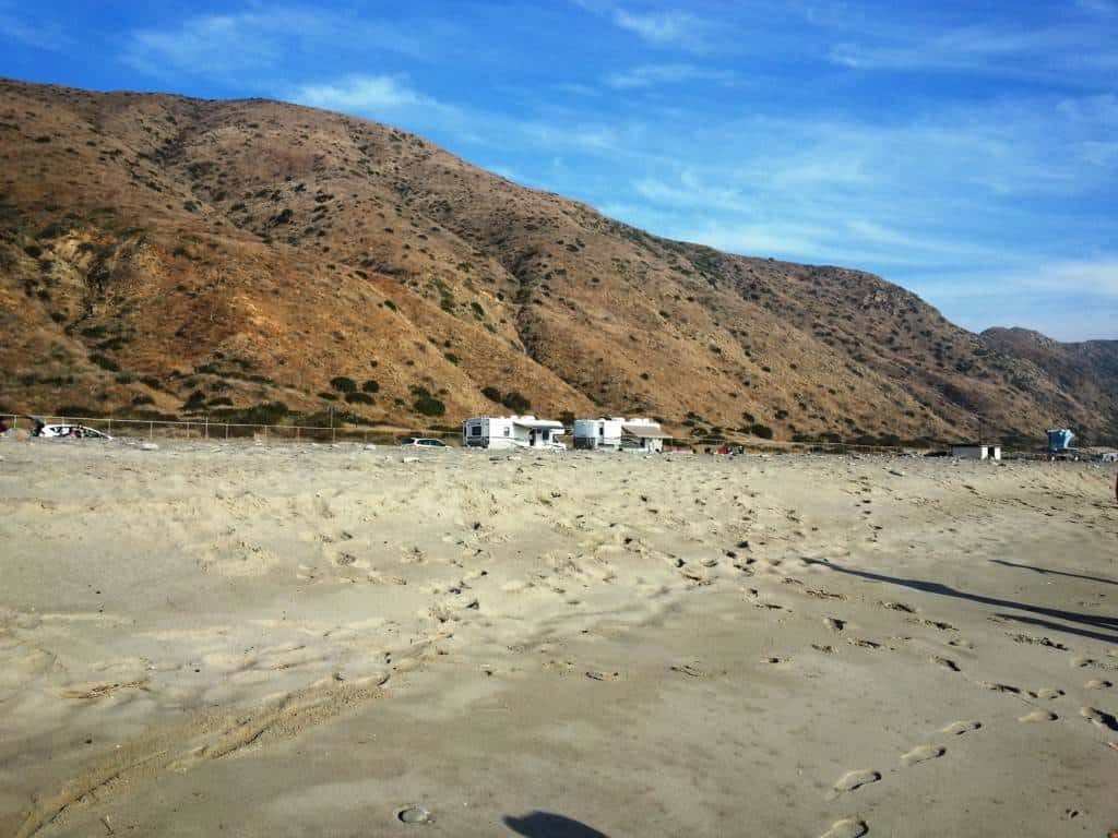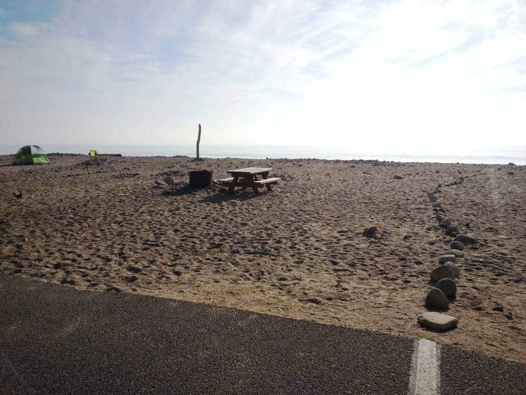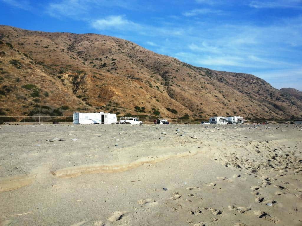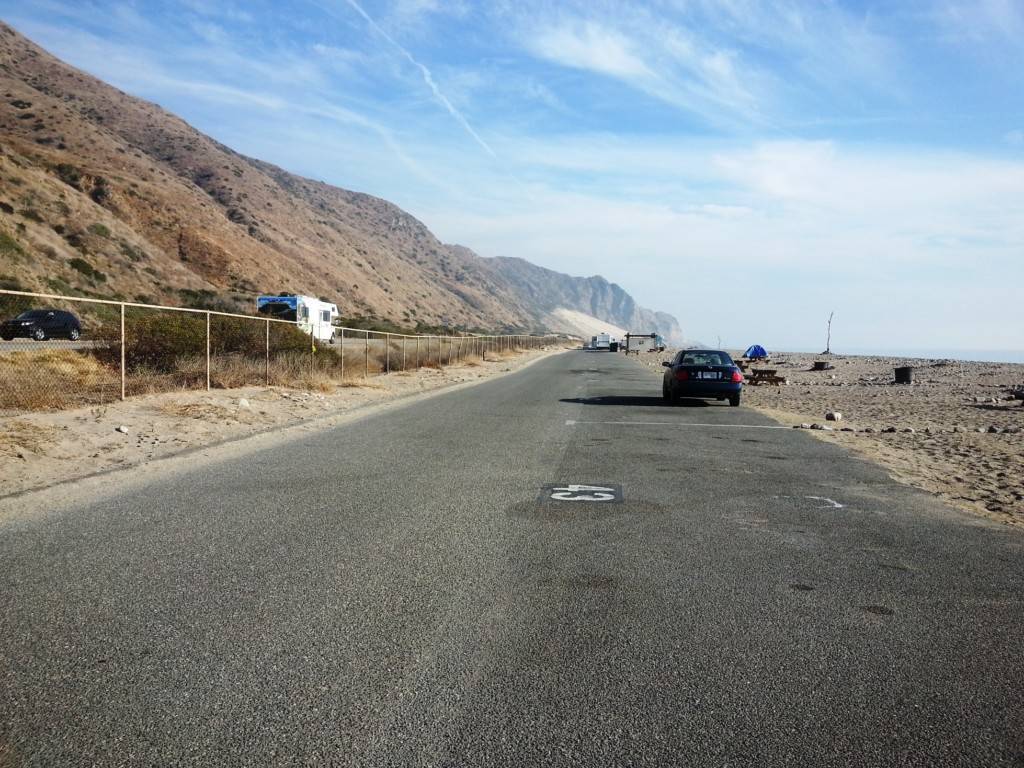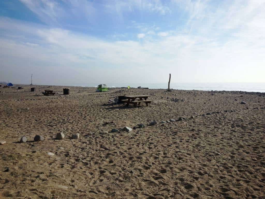 Thornhill Broome Beach Campground is part of Point Mugu State Park located north of Malibu California along the Pacific Coast. This campground is located adjacent to the sand. Primitive tent and RV camping. are set on a single paved roadway sandwiched between the Pacific Coast Highway and crashing waves. This is one of the lesser known campgrounds along the California Coast and affords guests with an amazing camping spot within steps of the pounding surf. The beach here is sandy with large stones and the waves tend to be close shore crashers = not good for swimming or surfing but if you want to sleep to the sound of pounding waves and enjoy magnificent sunsets this is a great place to camp.