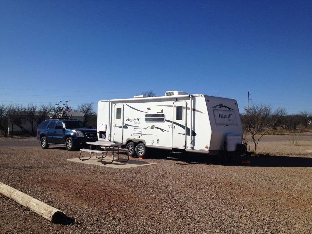 We stayed at Tombstone Territories for one night in March, in a 26′ travel trailer. It’s very nice for a private park – clean, well kept, sites are spacious and fairly level with full hook-ups, though there’s no vegetation or privacy between them.