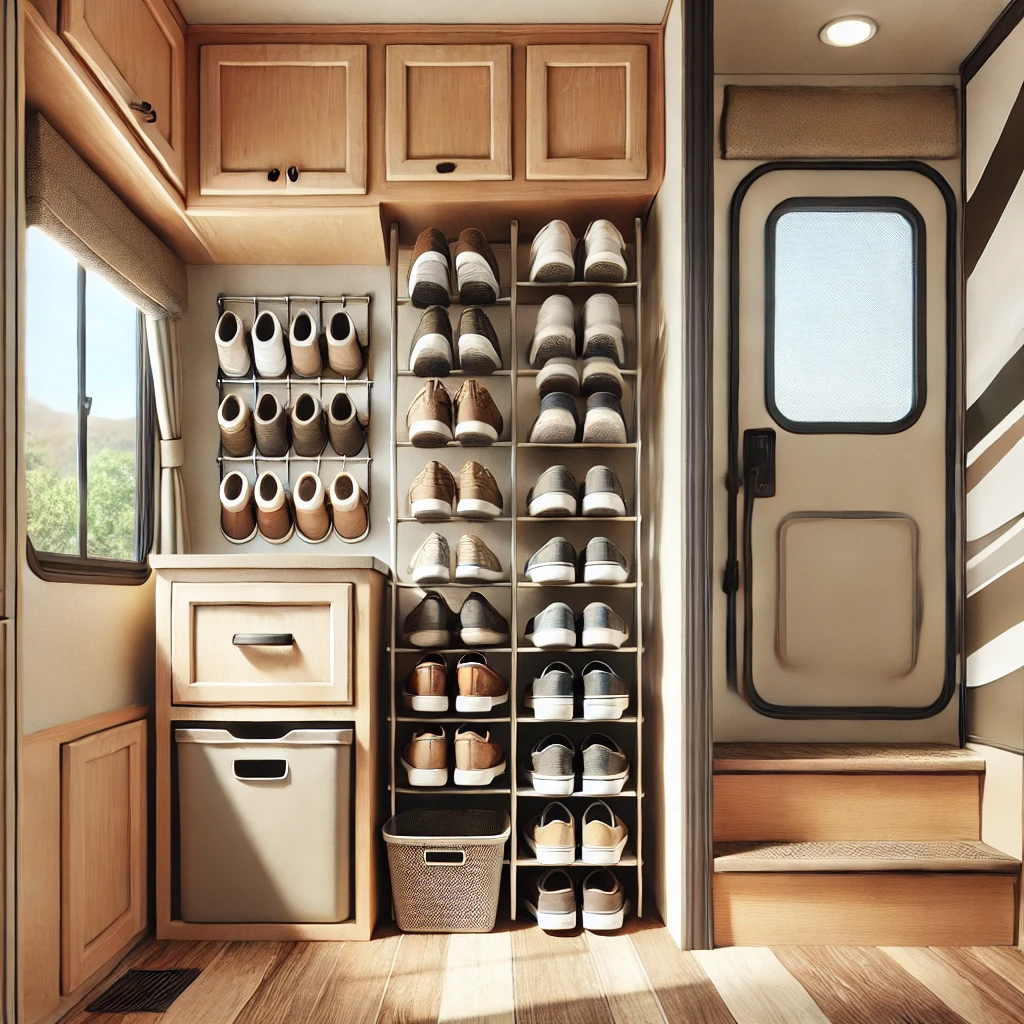 🚐 What’s your favorite RV shoe storage hack? Drop a comment and share your ideas!