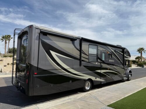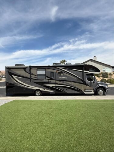 Forget those underpowered gas setups that wheeze uphill—this Seneca sits on a Freightliner chassis with diesel power behind it.