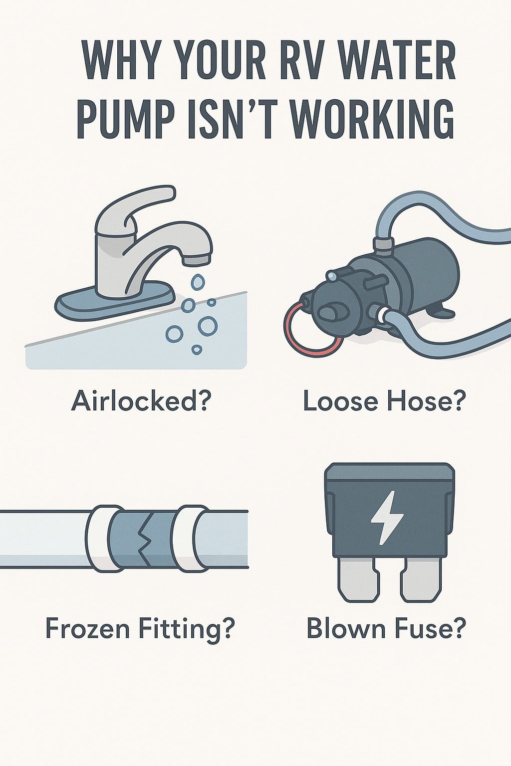 Water pump issues can feel like the end of the world when you’re dry camping—but most are simple fixes. Whether it’s an air bubble or a loose hose, take a few minutes to troubleshoot calmly.