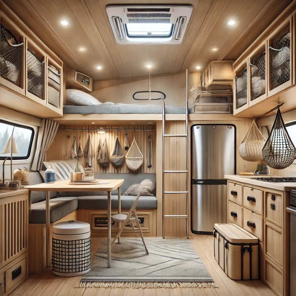 Boat cabins maximize storage by using walls, ceilings, and unused vertical spaces. RVers can borrow this trick by utilizing: