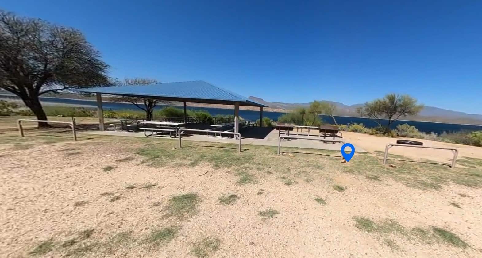 Cholla Campground at Roosevelt Lake, is one of several campgrounds on the shores of the largest lake/reservoir located entirely in the State of Arizona. It is situated within a lush sonoran desert landscape at an elevation of 2168'. Cholla Campground is also the largest solar powered campground in the United States. Each of its 206 campsites have shade ramadas, firepits, grills, and picnic tables. Playgrounds, showers and toilet facilities are scattered throughout the campground. The area around Cholla Campground is often alive with abundant wildlife such as mule deer, coyotes, geese, fox, javalina, and the occasional bald eagle.