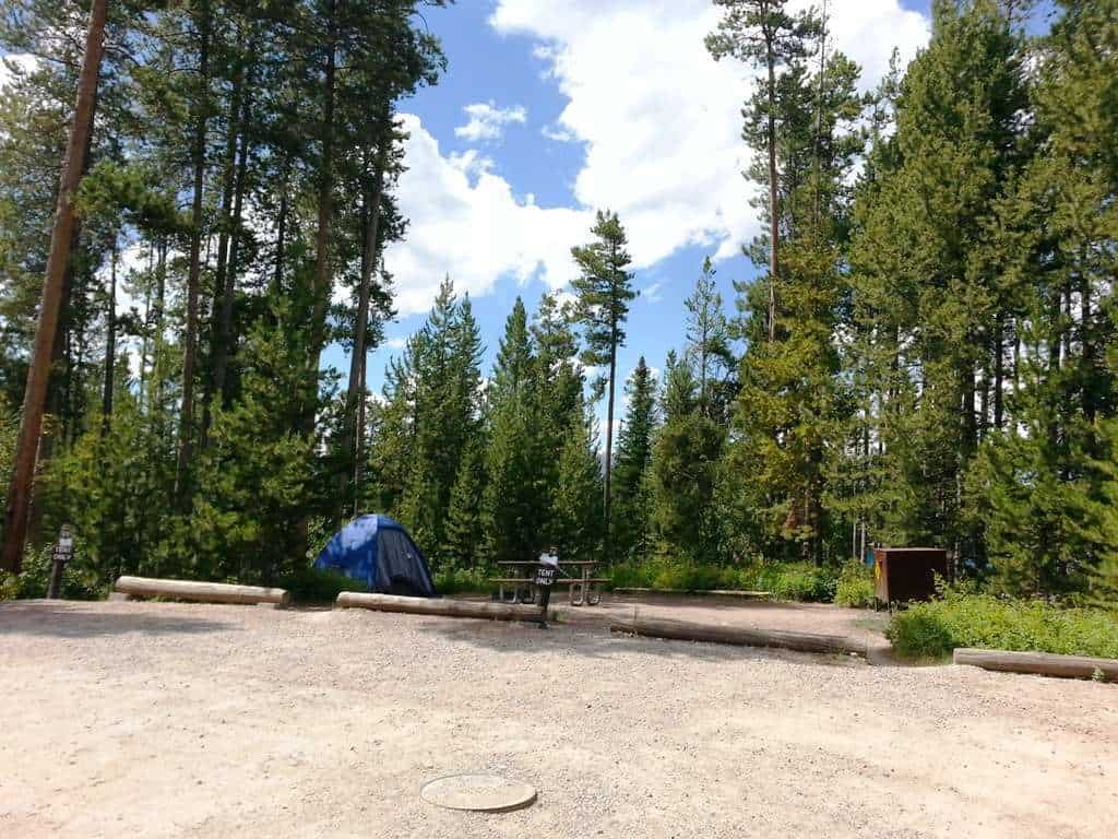 Lizard Creek Campground in Grand Teton National Park offers primitive tent and RV camping sites (size limit of 30') close to Jackson Lake. Situated in a heavily forested setting the campsites are a mix of back in small RV/ tent sites and more private walk-in tent camping sites. A first come first served campground there is a camp host on site to judge arm wrestling matches over who gets the last available site. Restrooms are located throughout the campground. An access area down to the lake for wading and kayaking/ canoeing can be found on the furthest loop from the entrance.