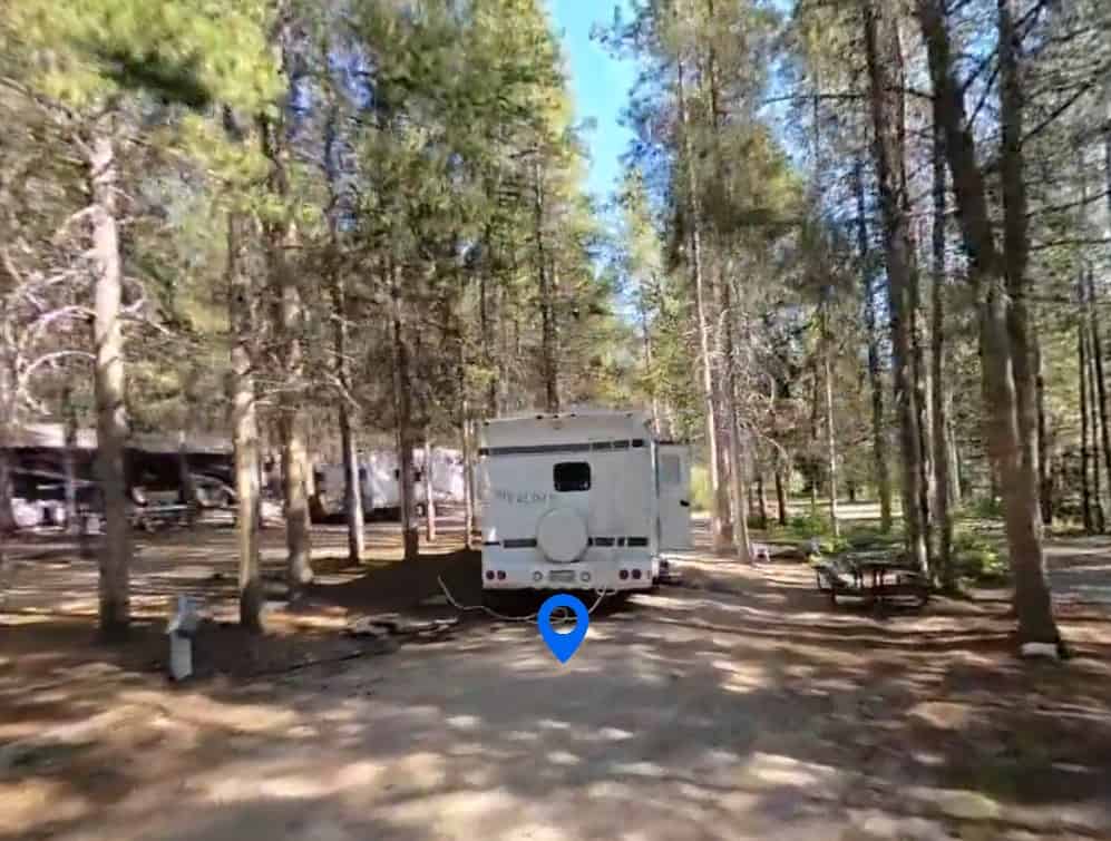 Picnic tables, fire rings, and bear boxes at each site. Paved roads and gravel/ dirt parking pads. Fresh water spigots are located throughout the campground.