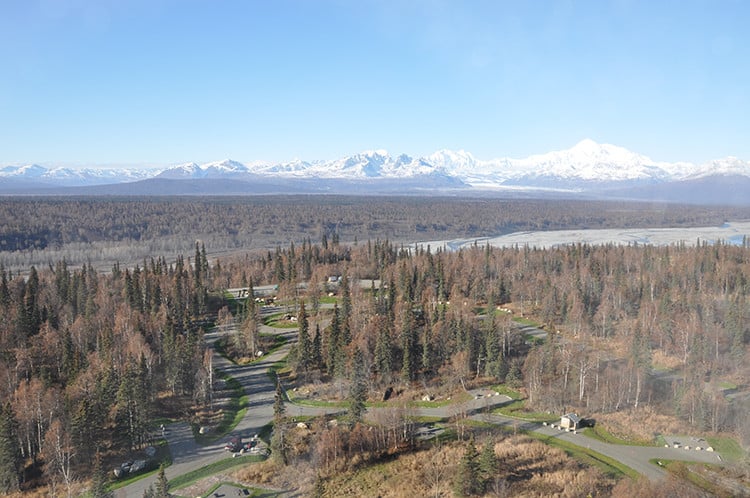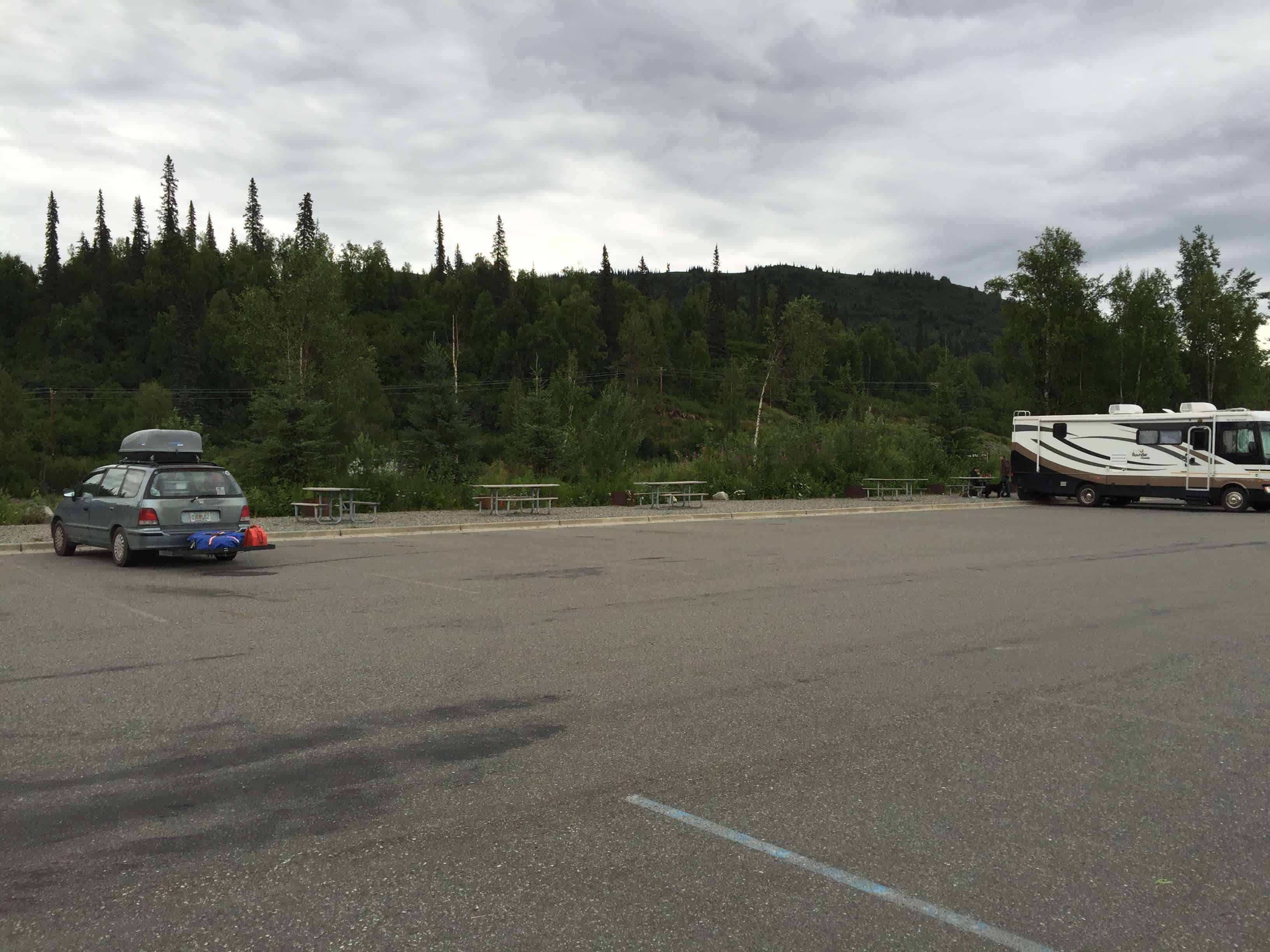 Montana Creek Campground in Talkeetna Alaska offers electric and primitive (no water, electric, or sewer) hookup RV and tent camping in a wooded setting near a fishing creek.