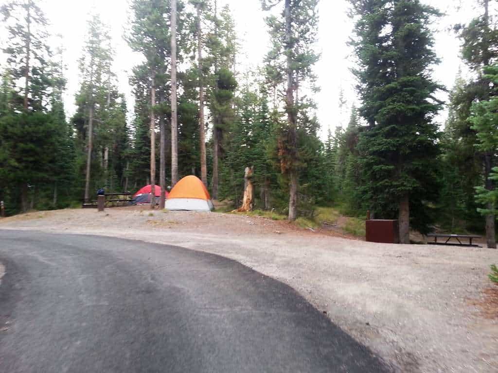 Sheffield Campground near Moran Wyoming is a US Forest Service campground located just off John D. Rockefeller Parkway between Grand Teton National Park and Yellowstone National Park. With 5 primitive tent and small RV campsites for a very cheap rate this little known and oft forgotten location is a great fallback for campers looking for last minute camping options in or near the two major National Parks. Accessed via a short dirt road there is a stream crossing that is readily traversed thanks to the aid of cement steps.