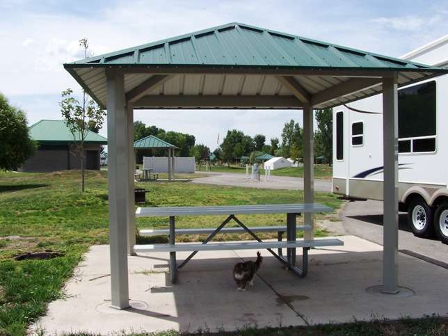The camping area has irrigated grass around the sites so tent campers should plan accordingly. The grass is very weedy and the area has a large population of "goat heads" or thorns that puncture bike tires; use caution.